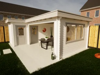 - Plat dak (lichte afloop naar achterzijde) incl. EPDM dakbedekking uit één geheel incl. spraylijm, kit en zij-uitloop