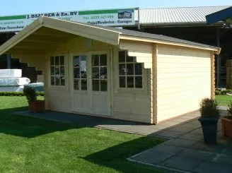 - 1x Vuren enkele verhoogde loopdeur met klein bovenraampje