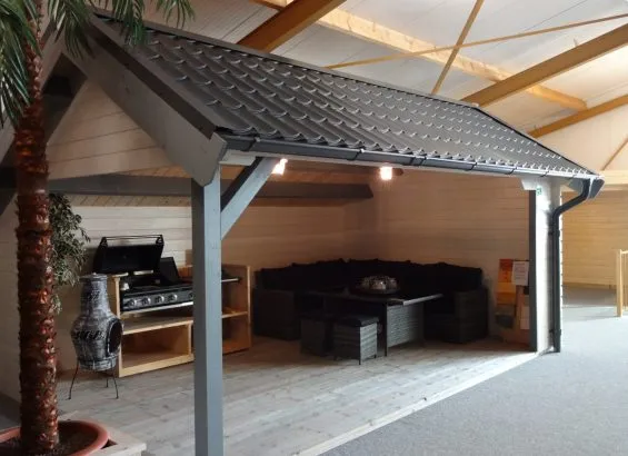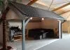 - Extra zware dakbalken + extra draagbalk in open zij- en voorkant