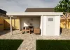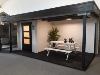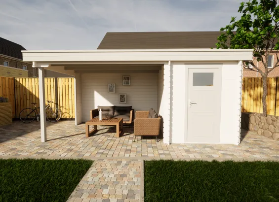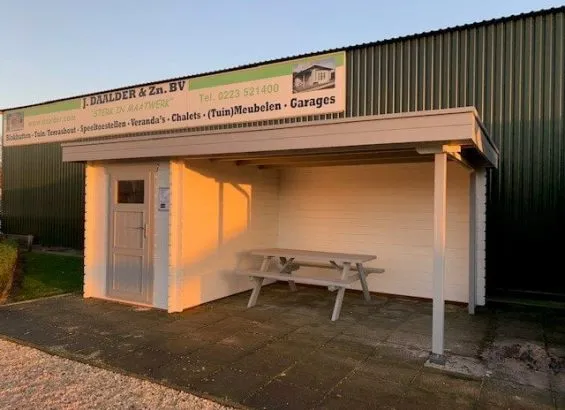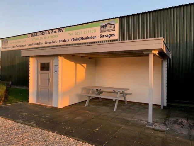 * Indien u een ”vuren vloer op hardhouten liggers” besteld in de webshop, geldt dit alleen voor in de blokhut!! dus niet in het veranda gedeelte
