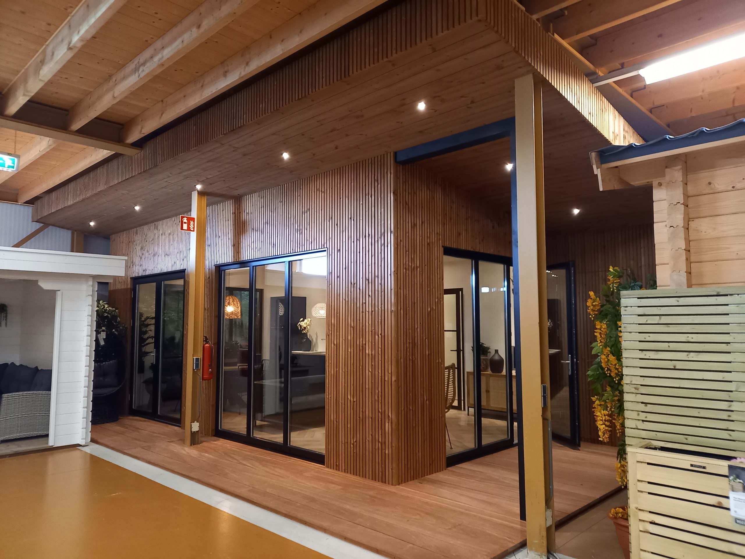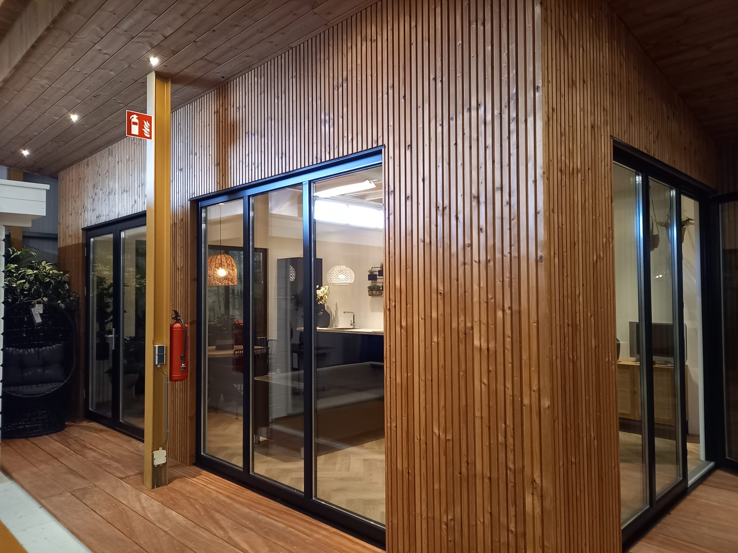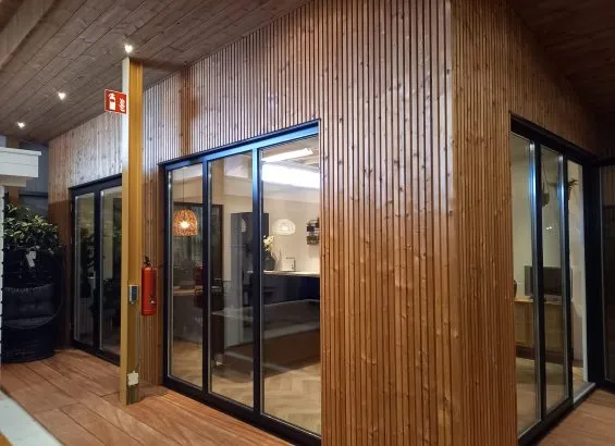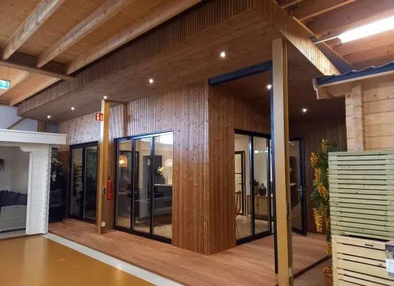– Wanden bekleed met thermisch gemodificeerde gevelbekleding