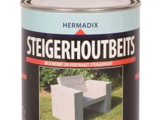 De eerste laag kan iets vergelen door de inhoudsstoffen van het hout; een tweede laag voorkomt deze vergeling.