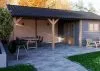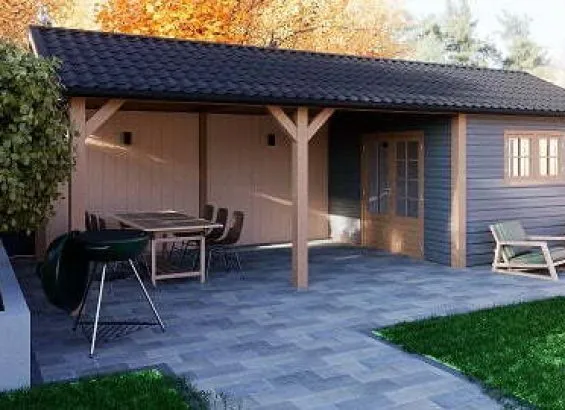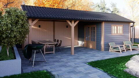 – Hardhouten funderingsrand onder de wanden en aansluitende staanders