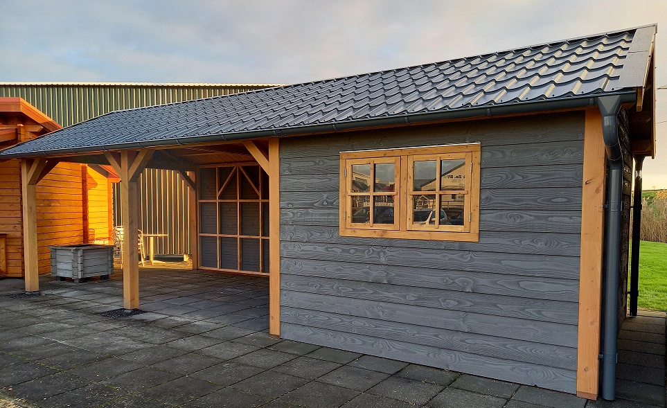 – Douglas dubbele deur in de berging (met kleine ruit of half glas)