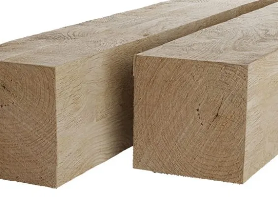 Eiken palen 120x120mm fijn bezaagd, lengte 500cm