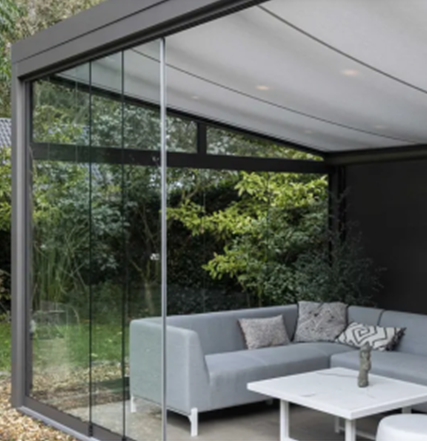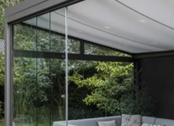 - Het doek loopt met de zijkanten door een rails en is voorzien van een ritsgeleiding, waardoor het licht nog beter buiten de veranda wordt gehouden!