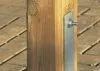 Douglas enkele deur met klein raampje en zwart beslag, groen geïmpregneerd (rechtsdraaiend)