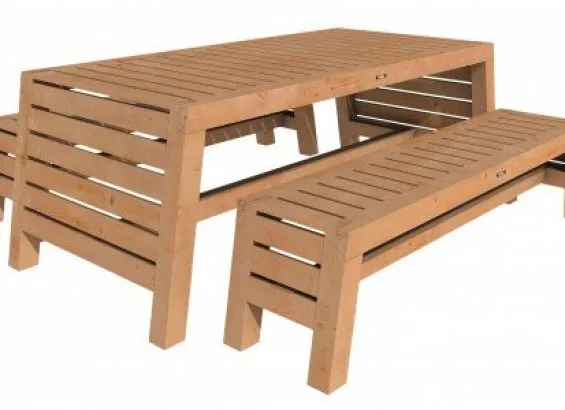 Set bestaat uit 1 tafel en 2 banken.