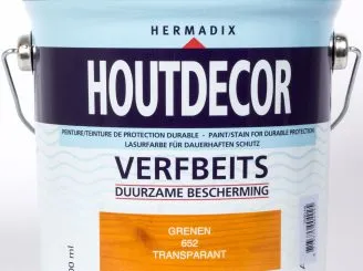 Buiten toepasbare duurzame biobased verfbeits voor schuren, schuttingen, deuren, kozijnen, geveltimmerwerk, tuinhout, tuinhuizen (bij voorkeur tuinhuizen ook aan de binnenzijde behandelen) e.d. Dekkende verfbeits c.q. transparante beits op basis van natuurlijke, hernieuwbare olie (alkydhars). Hoogwaardig verfproduct; bevat geen ander oplosmiddel dan water, is biobased en dus minder milieubelastend. Geen nare verflucht, makkelijk verwerkbaar. De transparante types hebben een U.V.-filter. Biedt een optimale bescherming. HOUTDECORBEITS is toepasbaar op o.a. vuren, grenen of reeds met alkydhars-verf geschilderd hout. Op andere houtsoorten dient de droging te worden getest. Een grondverf is niet nodig. Nieuw, niet verduurzaamd hout vooraf impregneren met Impraline Pre-Activ. Verbruik: 2,5 liter voor ca. 20-25 m2.