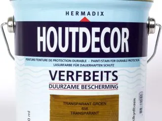 Buiten toepasbare duurzame biobased verfbeits voor schuren, schuttingen, deuren, kozijnen, geveltimmerwerk, tuinhout, tuinhuizen (bij voorkeur tuinhuizen ook aan de binnenzijde behandelen) e.d. Dekkende verfbeits c.q. transparante beits op basis van natuurlijke, hernieuwbare olie (alkydhars). Hoogwaardig verfproduct; bevat geen ander oplosmiddel dan water, is biobased en dus minder milieubelastend. Geen nare verflucht, makkelijk verwerkbaar. De transparante types hebben een U.V.-filter. Biedt een optimale bescherming. HOUTDECORBEITS is toepasbaar op o.a. vuren, grenen of reeds met alkydhars-verf geschilderd hout. Op andere houtsoorten dient de droging te worden getest. Een grondverf is niet nodig. Nieuw, niet verduurzaamd hout vooraf impregneren met Impraline Pre-Activ. Verbruik: 2,5 liter voor ca. 20-25 m2.