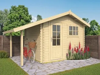 Houten aanbouw terrasoverkapping met dakshingles 300cm diep