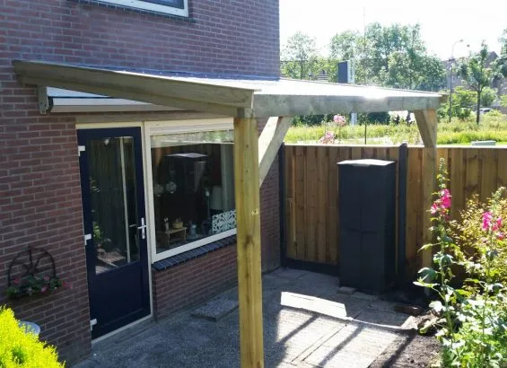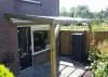 Houten aanbouw terrasoverkapping met dakshingles 350cm diep