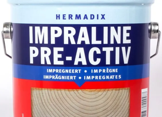 Biobased impregnant speciaal ontwikkeld voor grenen en vuren tuinhout zoals: blokhutten, tuinschuren, speeltoestellen, meubelen e.d. Dringt diep in het hout met als doel vochtindringing en schimmels voorkomen. Na impregneren minimaal 24 uur laten drogen. Hierna HOUTDECORBEITS toepassen. IMPRALINE PRE-ACTIV is op basis van natuurlijke, hernieuwbare oliën en is nagenoeg kleurloos.