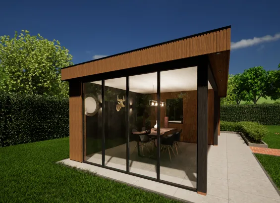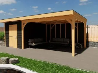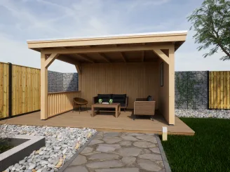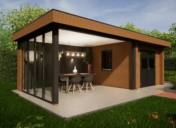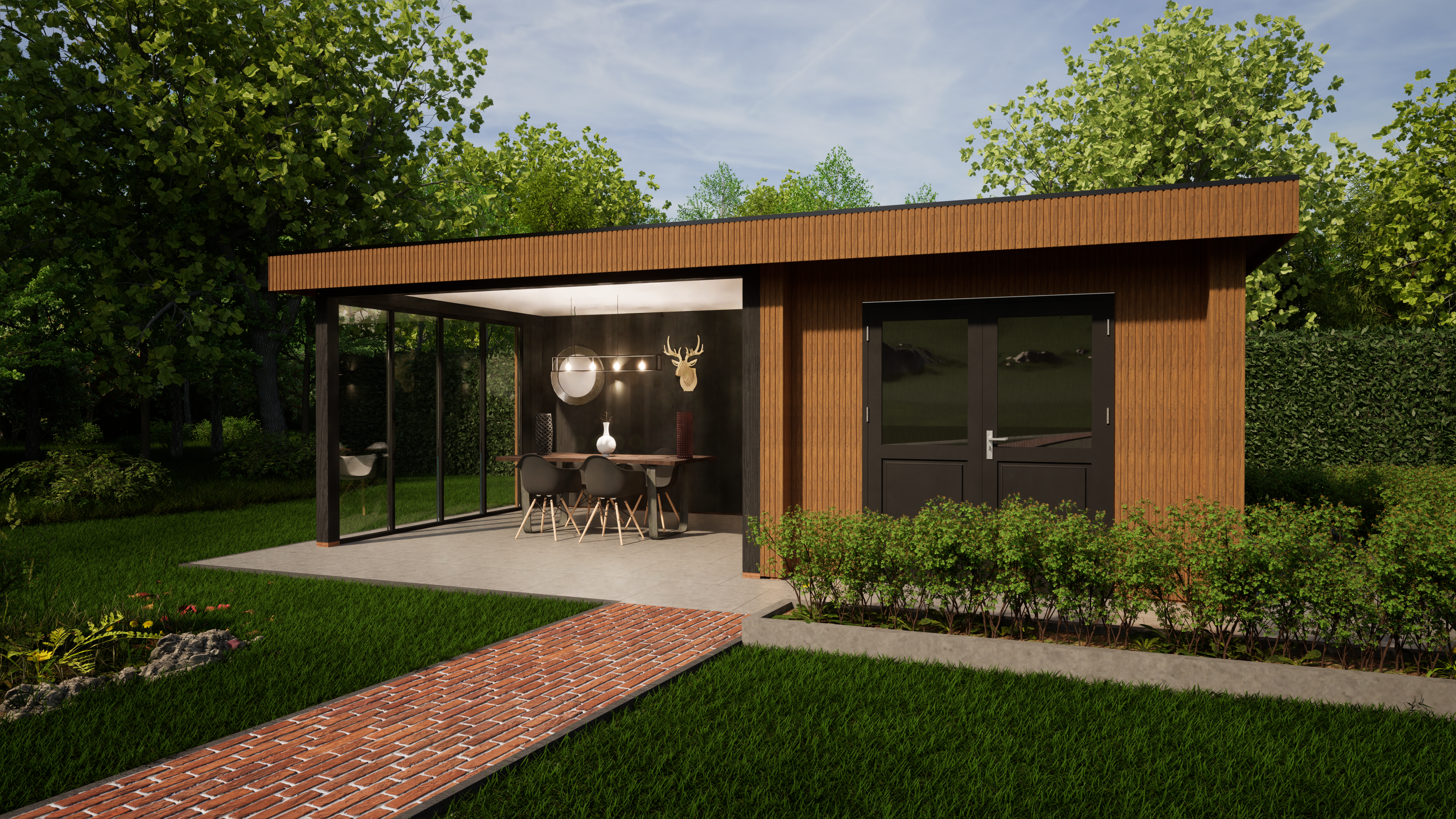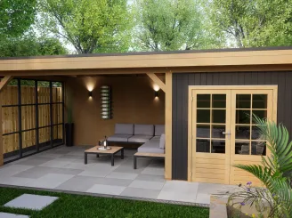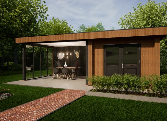 Thermo Ayous is uiterst duurzaam (klasse I-II) en mag onbehandeld buiten worden toegepast (het hout zal dan wel vergrijzen) - 4 stuks ‘’Steellook’’ panelen in zijwand veranda