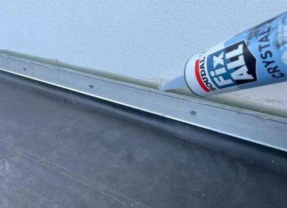 De strip wordt vast geschroefd op de plaats van de slobgaten. Tevens adviseren wij u om aan de bovenrand een ril kit te plaatsen voor een volledig waterdichte aansluiting.