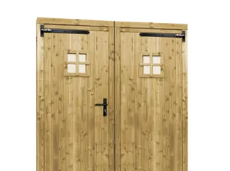 Douglas dubbele deur met klein raampje en zwart beslag, groen geïmpregneerd