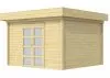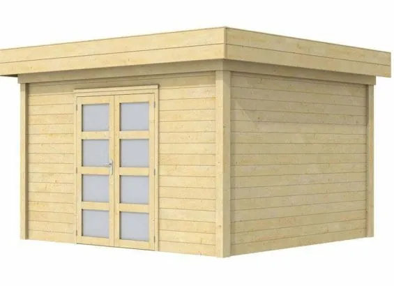 De tuinhuizen zijn uitgevoerd met een overstek van 25cm aan voor- en zijkanten. De wanden zijn vervaardigd uit blokhutprofielen van 28mm dikte.