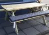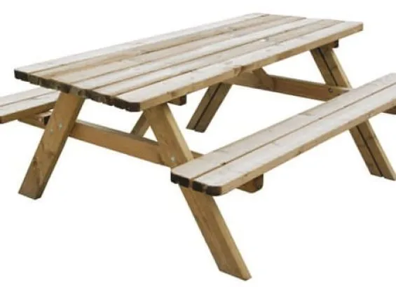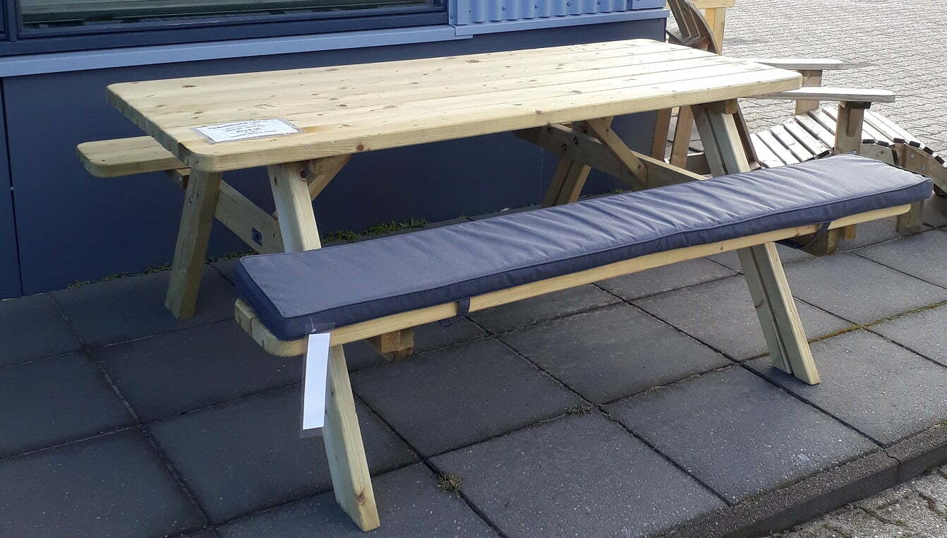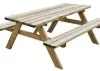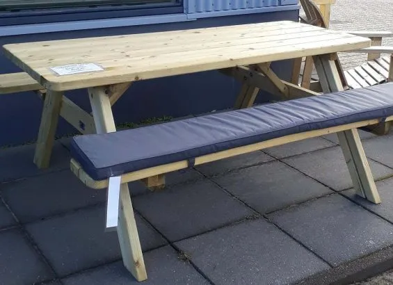 Deze super stevige picknicktafel is 180cm lang, blad is 74cm breed (totaal 151cm breed) en heeft een houtdikte van 40mm en is keteldruk geĆÆmpregneerd.