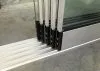 Om een goede en soepele verplaatsing van de zware glaspanelen te kunnen garanderen is het noodzakelijk dat de onderrail 100% waterpas komt te liggen en volledig ondersteund wordt. Dit kunt u het beste doen door om de 80cm een hardhouten paal in de grond te slaan, en over deze palen heen een aluminium ligger 40Ć80 of 110Ć110 te plaatsen (in kleur van veranda constructie).
