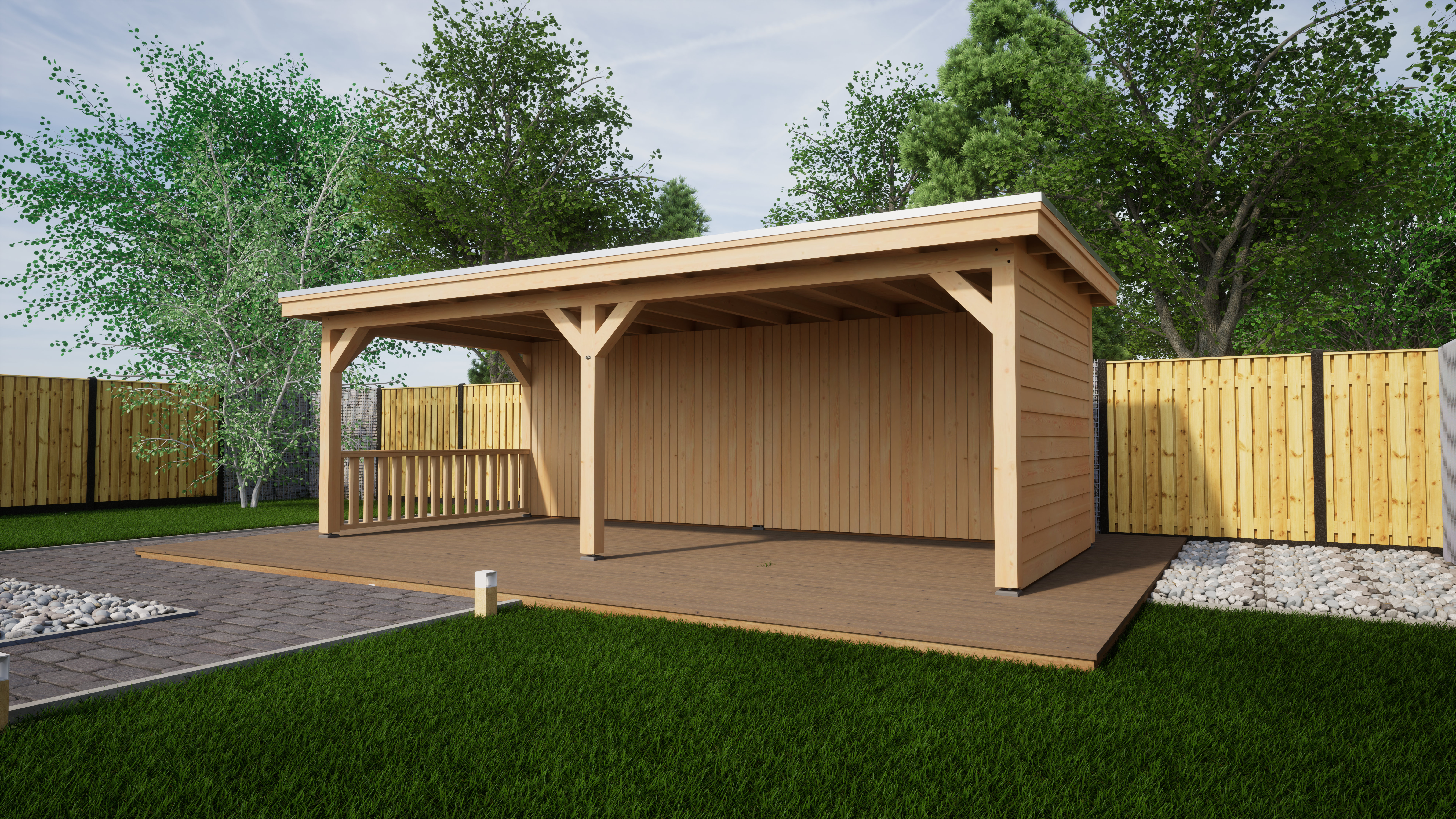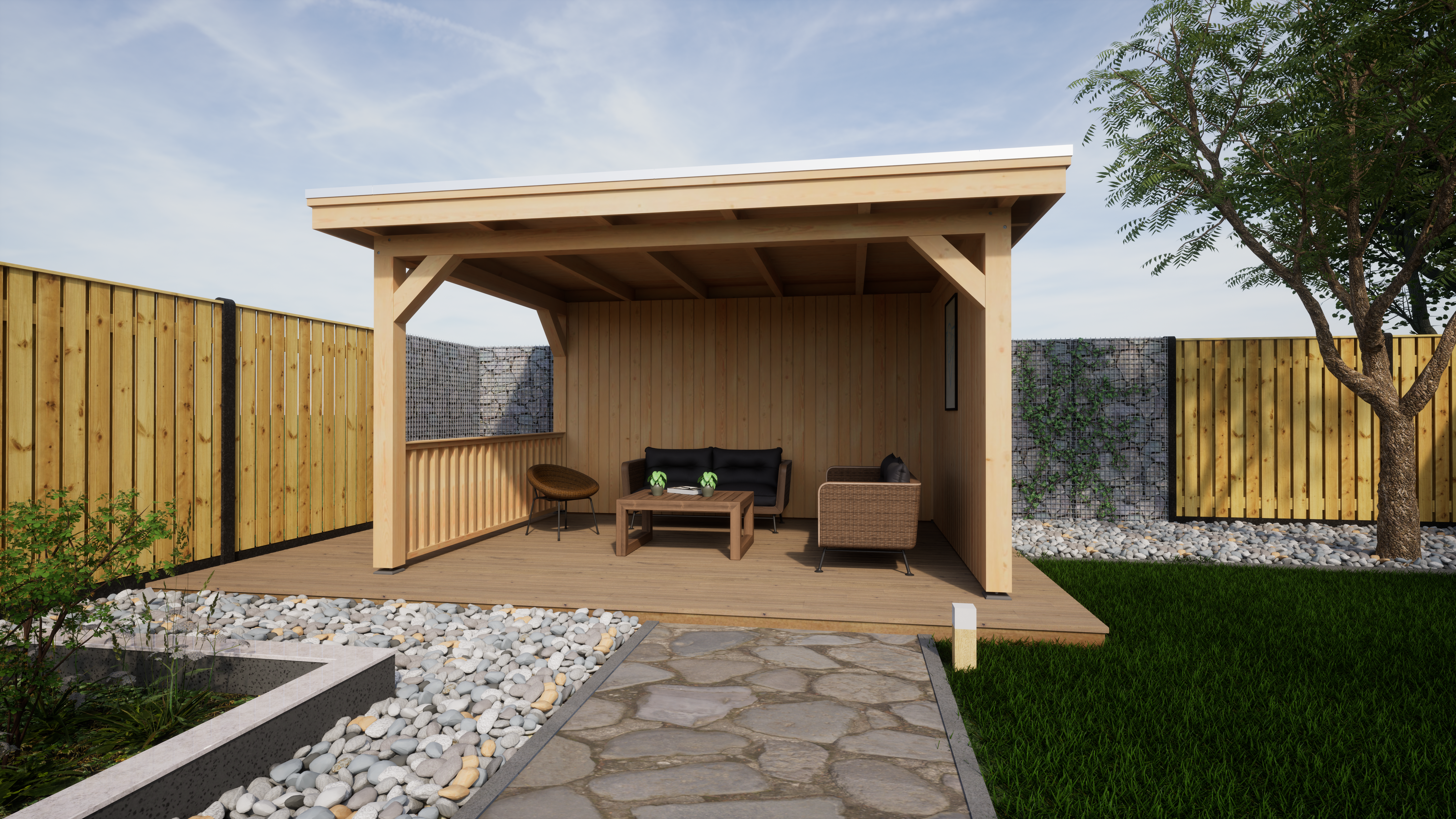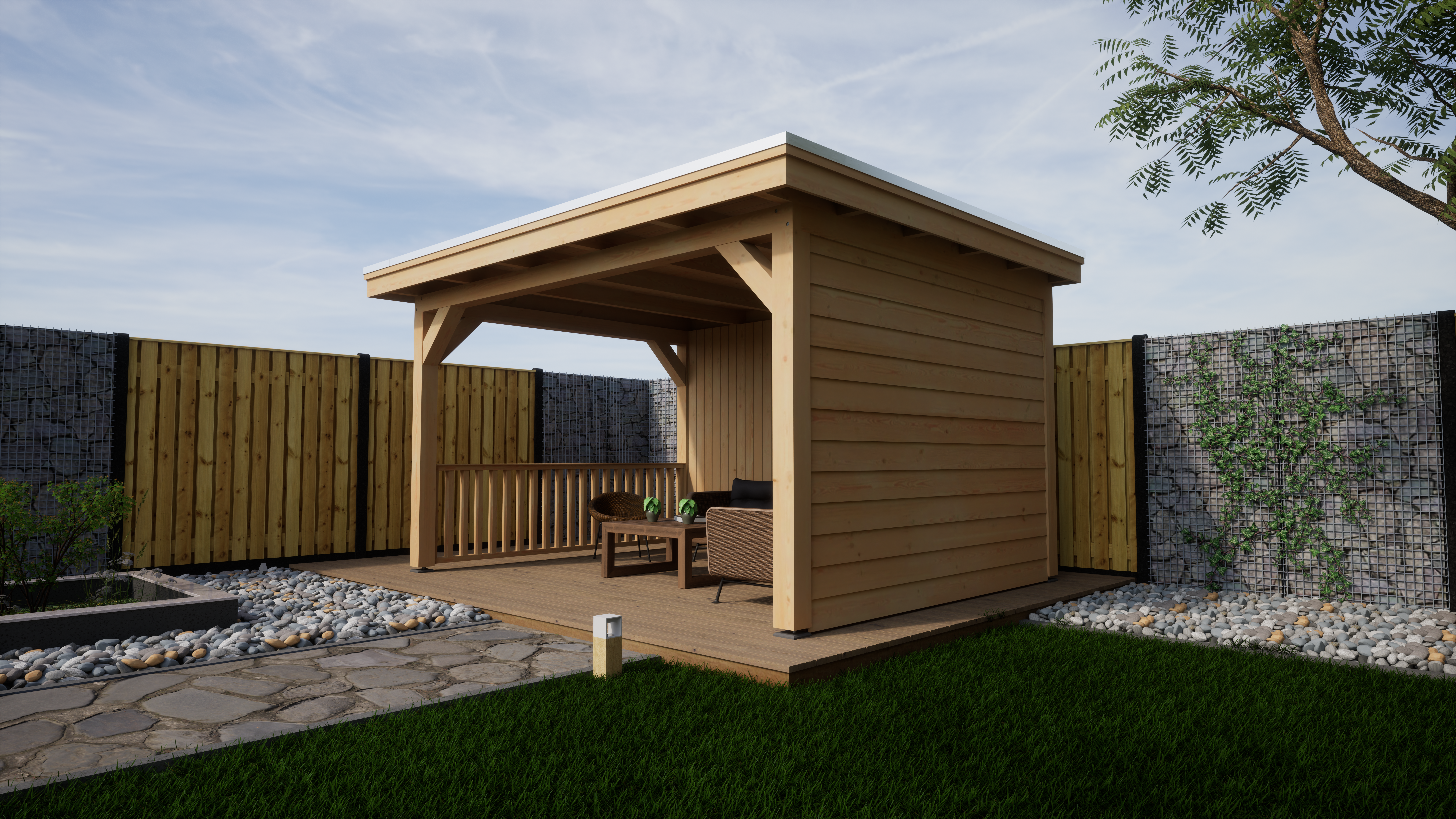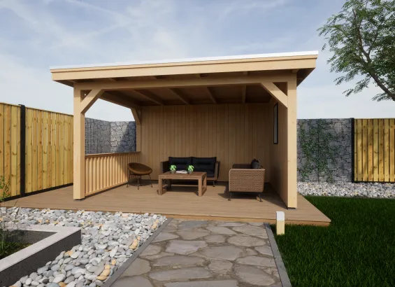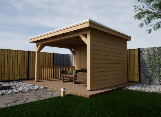 – Dichte zijwand bekleed met Douglas blank Zweeds rabat