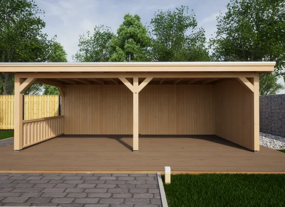 – Plat dak met dakoverstek aan 3 zijdes