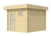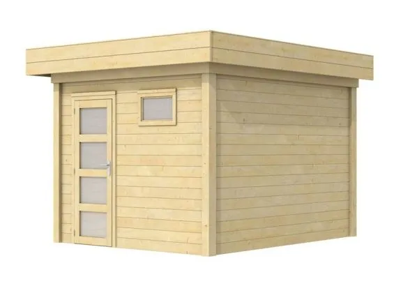 De tuinhuizen zijn uitgevoerd met een overstek van 25cm aan voor- en zijkanten. De wanden zijn vervaardigd uit blokhutprofielen van 28mm dikte.