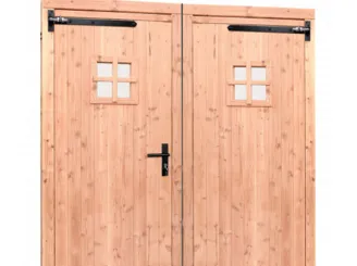 Douglas dubbele deur met klein raampje en zwart beslag, blank