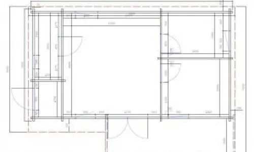 Maatwerk ‘’Chalet’’ – Afmeting 820x947cm orenmaat – Indelingen voor woonkamer/keuken, werkruimte, badkamer en schuurruimte, zie schets – Uitgevoerd in 90mm onbehandeld vuren blokhuthout – ISO-kwaliteit deuren en…