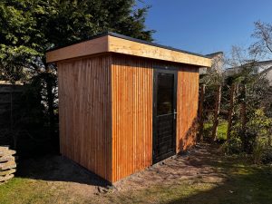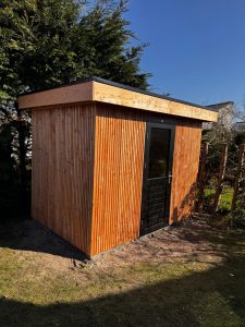 -Wanden enkelzijdig bekleed met Douglas-look rhombus profiel