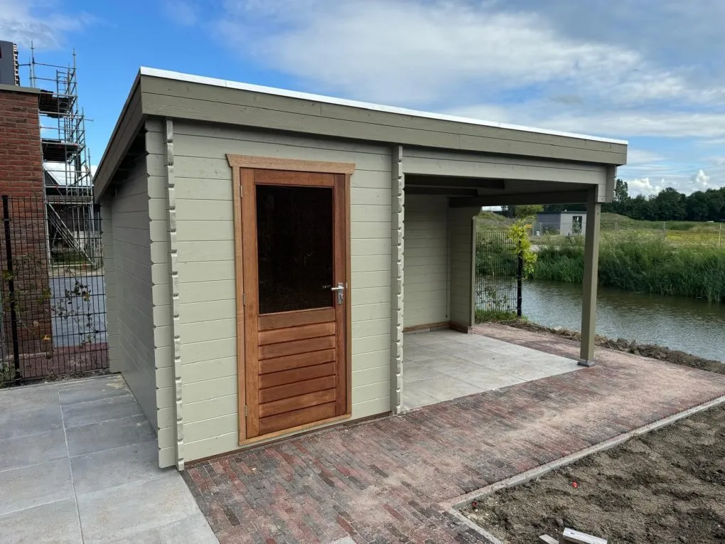 -Metalen dakgoot aan de achterzijde incl. afvoerbuis