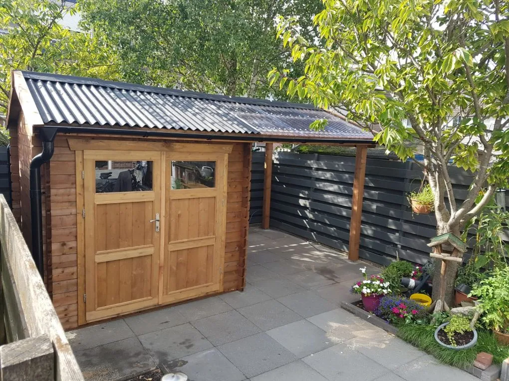 – Afmeting 500x300cm orenmaat, waarvan blokhut 250x300cm