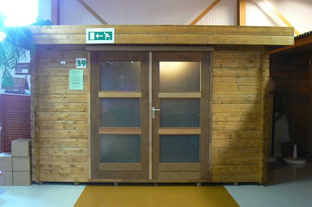Deze blokhut ”Daalder Exclusief” staat opgesteld in onze showroom.
