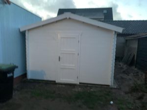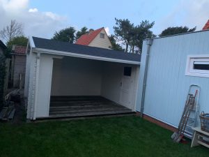 – Achterwand + linkerzijwand + kort voorwandje van de veranda gesloten
