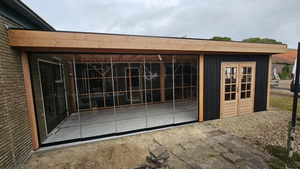 – Achterwand, rechterzijwand en voorwand van ± 330cm gesloten