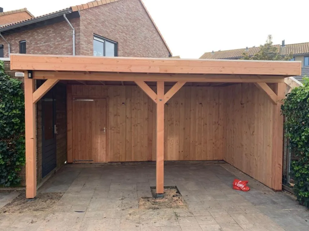 -6 Douglas staanders 140x140mm, 4 schoren 130x130mm-2 Betonpoeren incl. stelanker