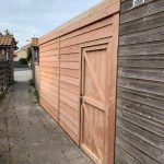 -Elementbouw, wanden enkelzijdig bekleed Douglas blank Zweeds rabat 27mm, RVS genageld