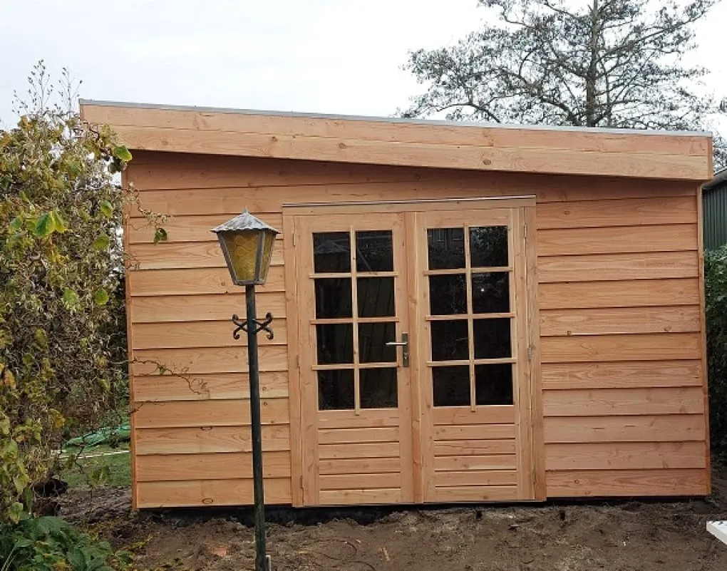 -Elementbouw, wanden enkelzijdig bekleed met Douglas blank Zweeds rabat 27x195mm,
