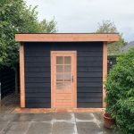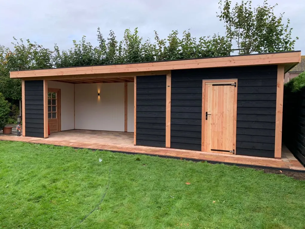 -Wanden aan de buitenzijde bekleed met zwart Zweeds rabat 24mm
