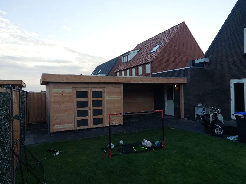 -Losse materialen t.b.v. binnenzijde veranda bekleden met Douglas blank blokhutplanken 28x135mm (horizontaal) 1 zijde geschaafd/ 1 zijde fijn bezaagd