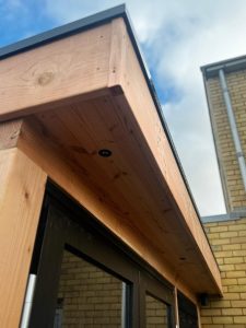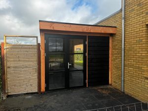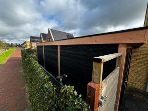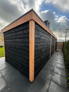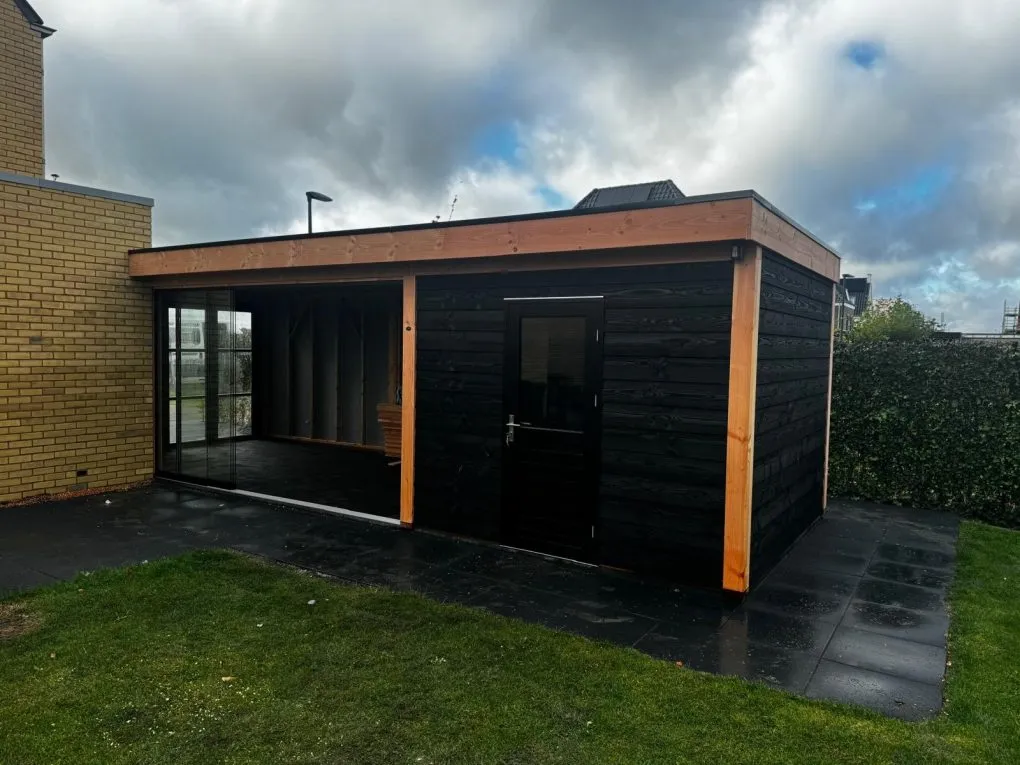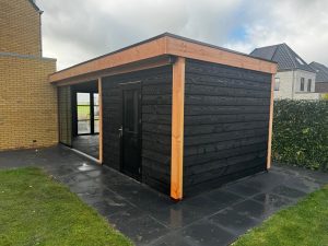 -Wanden enkelzijdig bekleed met Douglas zwart gespoten Zweeds rabat