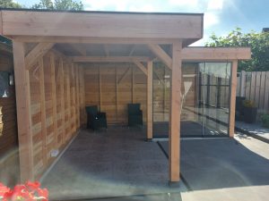 -Wanden enkelzijdig bekleed met Douglas blank Zweeds rabat 27mm, RVS genageld
