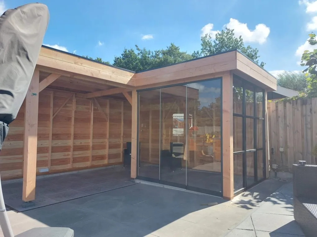-3 zwarte vaste steellook panelen in de rechterzijde incl. gelaagd glas
