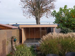 -Achterwand en linker zijwand aan de buitenzijde bekleed met Douglas blank Zweeds rabat 27mm