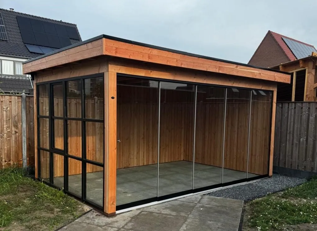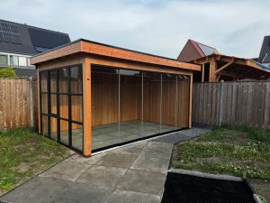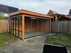 -Steellook panelen in linkerzijwand, waarvan 1 met groot draai/kiep raam