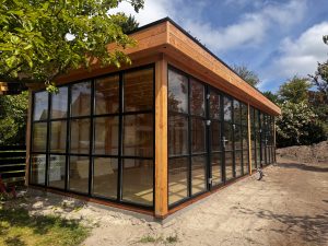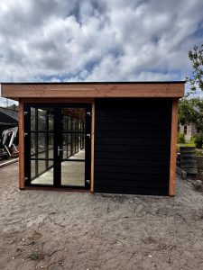 -Wanden aan de buitenzijde enkelzijdig met Douglas zwart Zweeds rabat