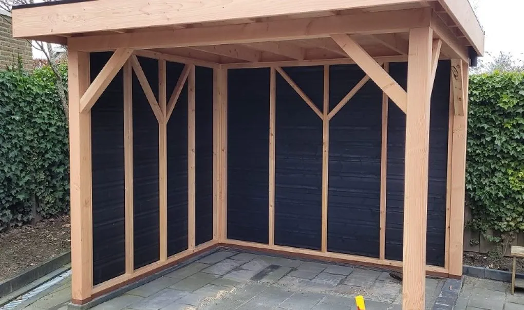 -Wanden aan de buitenzijde enkelzijdig bekleed met zwart Zweeds rabat 24mm