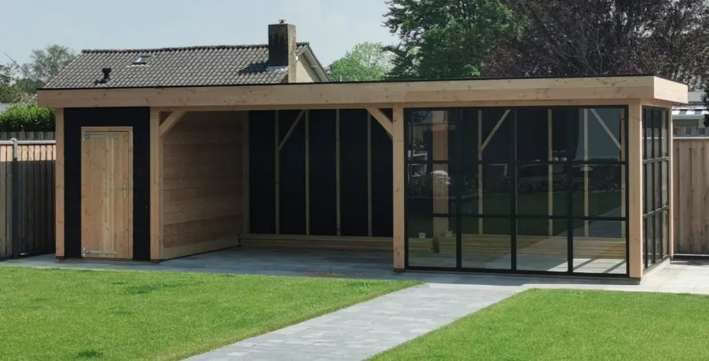Douglas vrijstaande Berging + overkapping Maatwerk