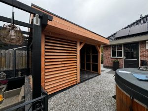 -Plat dak, overstek aan de voorzijde 50cm, beide zijkanten 20cm