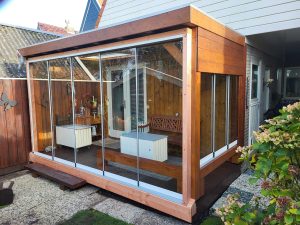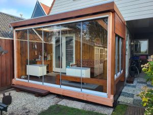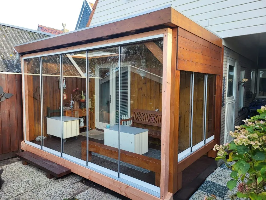 -Glaswand voor de palen + benodigd hout om rails op te kunnen monteren