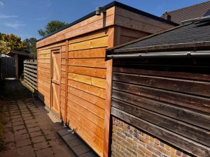 -Buitenzijde achter- en zijwand met Douglas blank Zweeds rabat